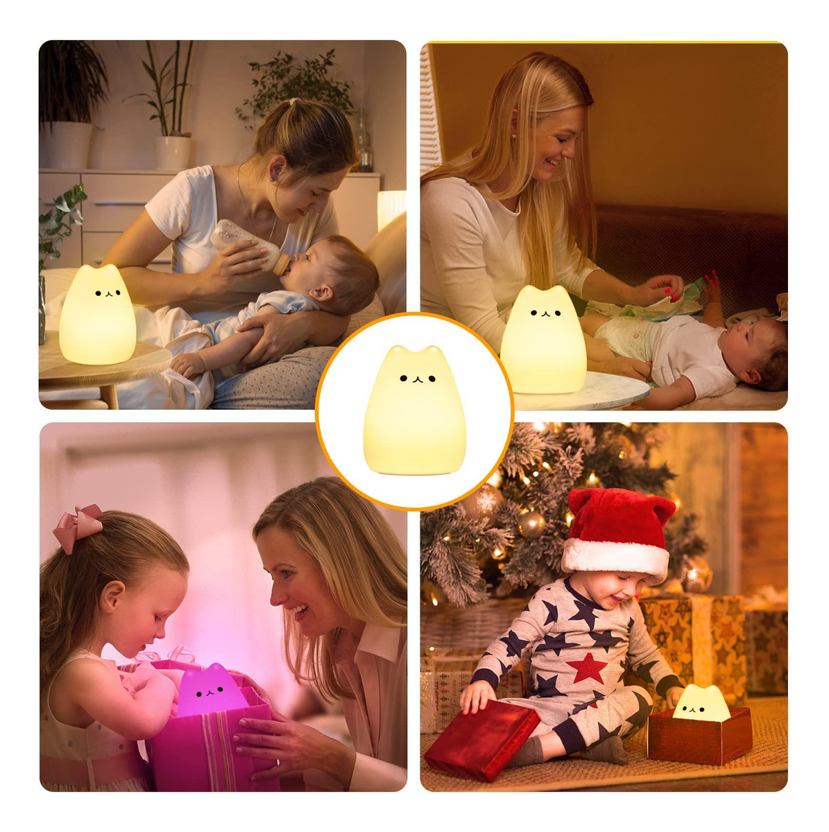 Emite una luz suave, cálida y cambiante que tranquiliza y genera rutina.